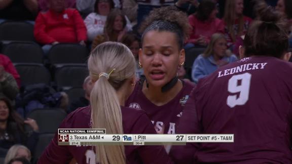 Kyndal Stowers gets the kill to help Texas A&M capture the first set vs. Pitt.