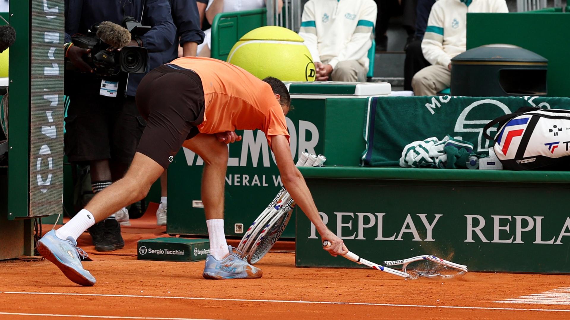 Daniil Medvedev loses his temper during his 6-0, 6-0 defeat to Matteo Berrettini at the Monte-Carlo Masters.